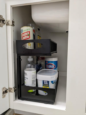 Tired of messy counters filled with bottles and jars? This under-sink organizer transforms chaos into order, providing neat, accessible storage. Keep everything in its place, so you can focus on more important things in life.