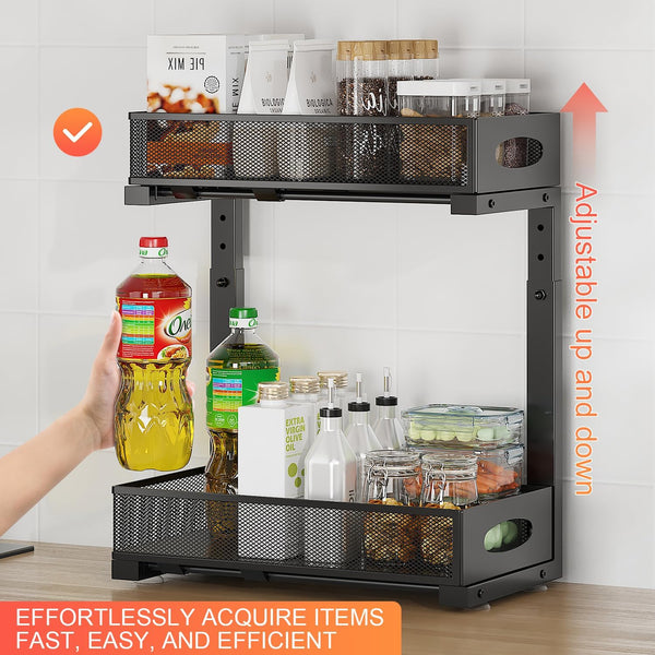 Unlike others, our organizer offers adjustable heights, sturdy metal design, and easy slide-out access, enhancing both style and functionality. Save space and simplify your life!